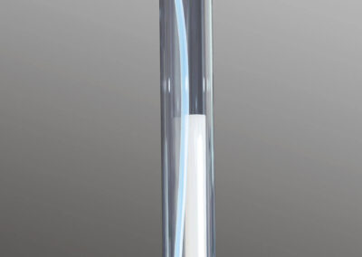 Il posto cura è completo di convogliatore di vapore in materiale plastico atossico con terminale orientabile in vetro e canale interno per il recupero condensa e scarico, supporto con anello di regolazione della nebbia (umida o secca), pisper in acciaio e cappuccio ad effetto Venturi realizzato in materiale atossico resistente al vapore.